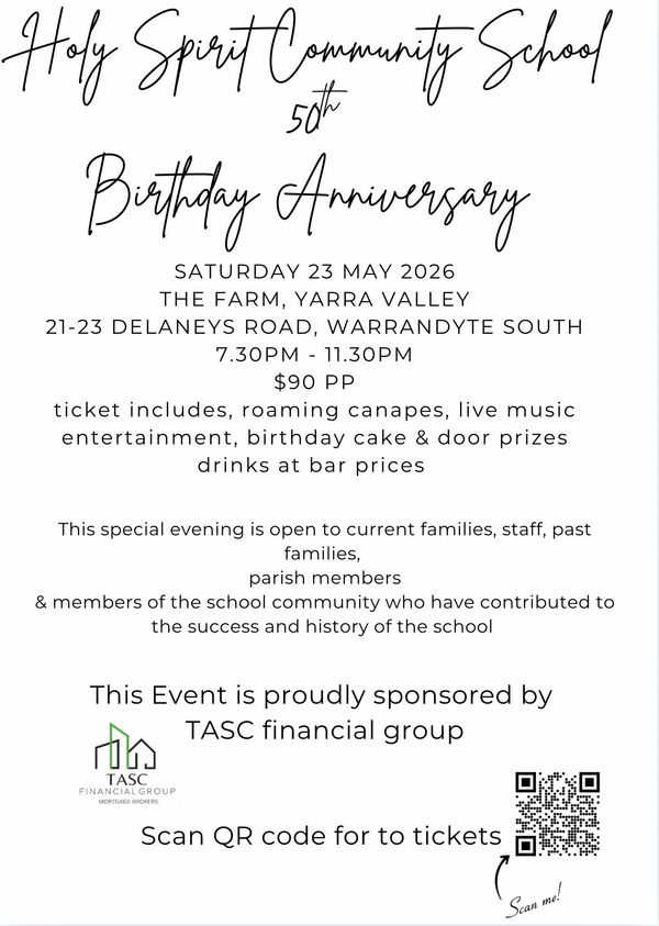 Holy Spirit Community School 50th Anniversary - Invitation