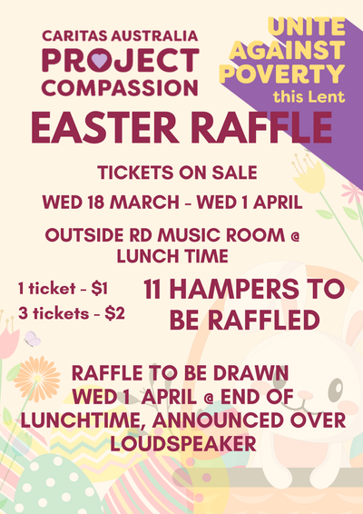 There is still more to look forward to! We are currently selling tickets for our Easter raffle, which features an incredible 11 hampers to be won. We encourage everyone to get involved for a chance to win while supporting Project Compassion.